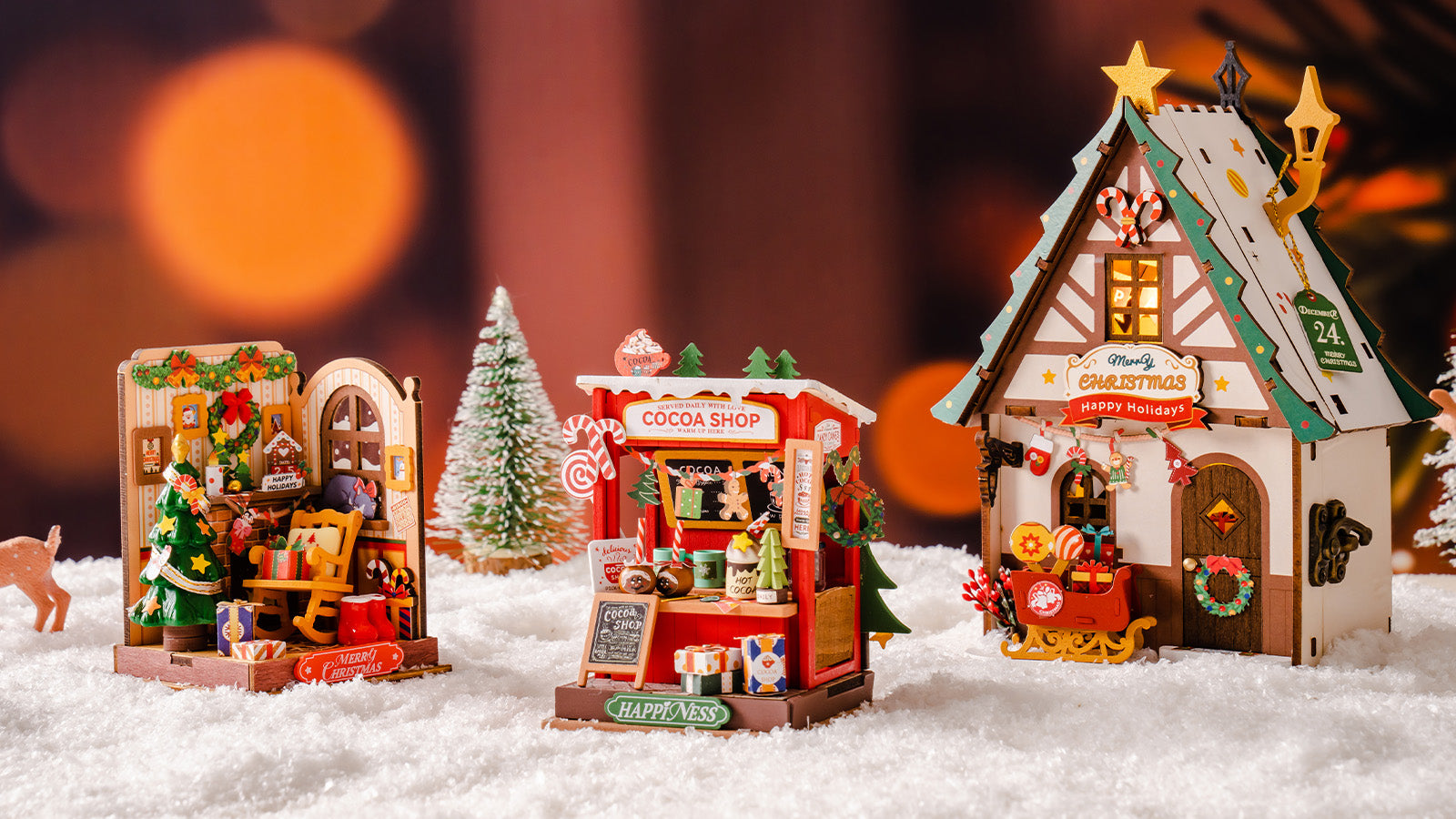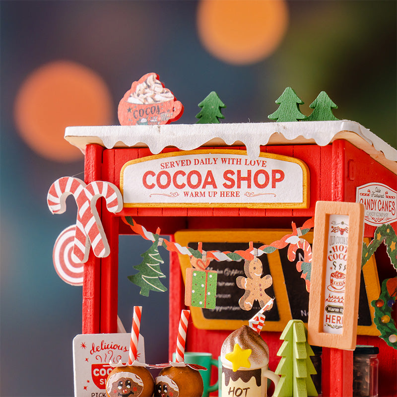 A miniatúra talapzatán a „Boldogság” felirat látható, emlékeztetve arra, hogy a forró kakaó és az édességek egyszerű, klasszikus élvezete minden korosztály számára mosolyt hoz.