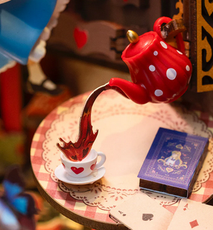 Az Őrült Teaparti javában tart, a barna folyadék ömlik egy piros pöttyös vízforralóból, ami mintha dacolna a gravitációval! A logika itt Csodaországban meghajlik.