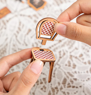 A készlet 148 darabból áll, az összeállítás kb. 3,5 órát vesz igénybe. Nem szükséges ragasztó vagy festék, mert a darabok tökéletesen illeszkednek és előre színezettek.